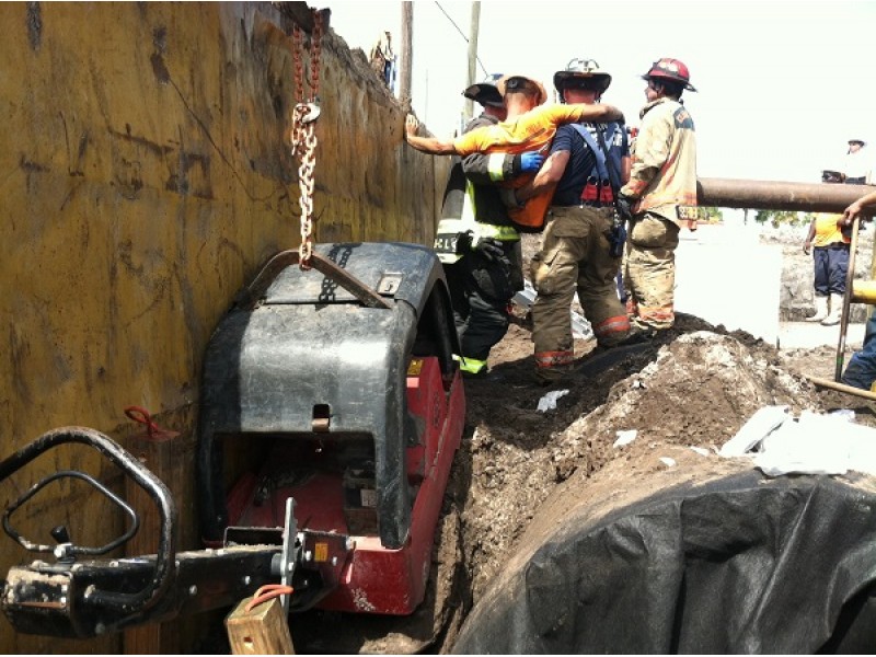 Quick-thinking Clearwater firefighters are responsible for saving a 42-year-old man when his leg became trapped in a trench at a construction site Tuesday morning.