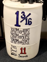 - 1 3/16 at 50psi = 4.93 GPS