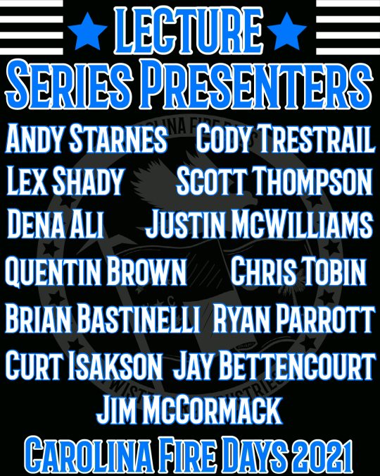 Twisted Fire Industries is hosting their annual Carolina Fire Days Conference, November 15-19, 2021 in Charlotte NC.